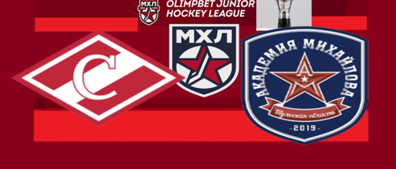 Матч регулярного чемпионата " Молодежной Хоккейной Лиги"," Олимпбет МХЛ" "Кубок Харламова" Плей-офф 1/8 финала ,между молодежной хоккейной командой МХК "Спартак" (Москва. Россия) и МХК "Академия Михайлова" (Тульская область,...