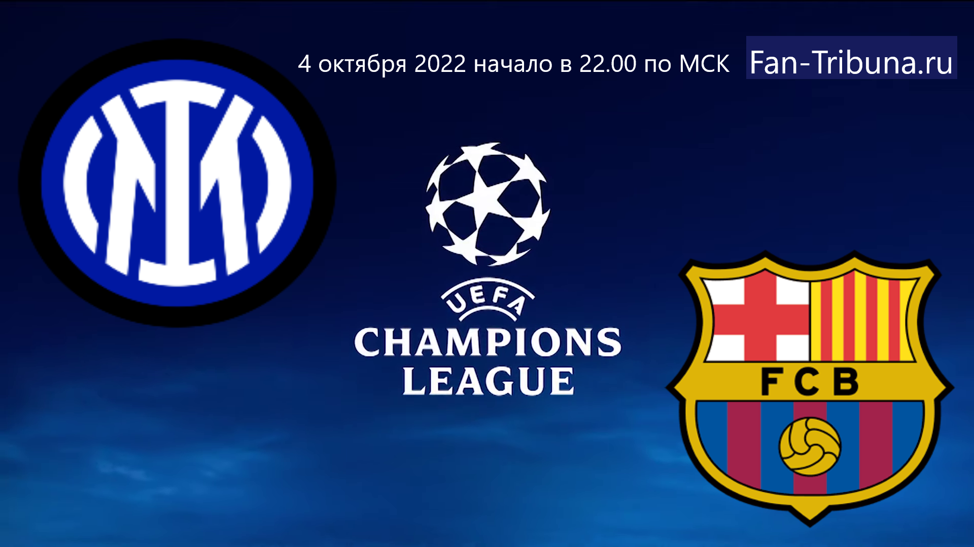Привет всем фанатам футбола! 04 октября 2022 года состоится матч 3 тура Лиги Чемпионов УЕФА. На стадионе: «Сан-Сиро» (Джузеппе Меацца) (Милан, Италия) вместимостью: 82995 зрителей ФК Интер встречается с ФК Барселона. Главный судья: Славко Винчич (Марибор, Словения).Прямую трансляцию матча вы сможете посмотреть на нашем сайте Fan-Tribuna.ru .Начало в 22.00 по МСК. Всем удачи и приятного просмотра.