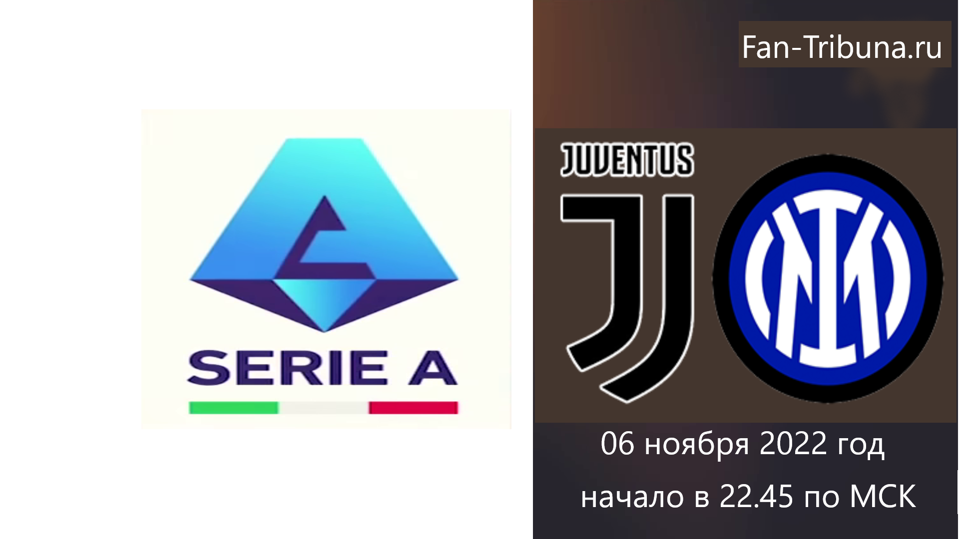 Привет всем фанатам футбола! 06 ноября 2022 года состоится матч 13 тура чемпионата Италии по футболу в рамках Серии А. На стадионе: «Альянц — Ювентус» (Турин, Италия) вместимостью: 41507 зрителей ФК Ювентус принимает ФК Интер. Прямую трансляцию матча вы сможете посмотреть на нашем сайте Fan-Tribuna.ru .Начало в 22.45 по МСК. Всем удачи и приятного просмотра.