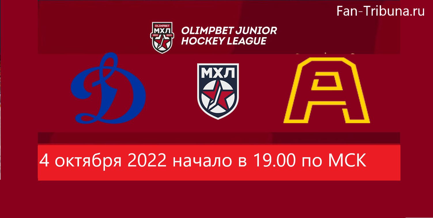 Привет всем любителям хоккея с шайбой ! 4 октября 2022 года пройдет матч регулярного чемпионата Молодежной Хоккейной Лиги ХК Динамо Москва принимает ХК Алмаз. Прямую трансляцию игры вы сможете посмотреть на этом сайте Fan-Tribuna.ru. Всем удачи и приятного просмотра. Начало в 19.00 по МСК.