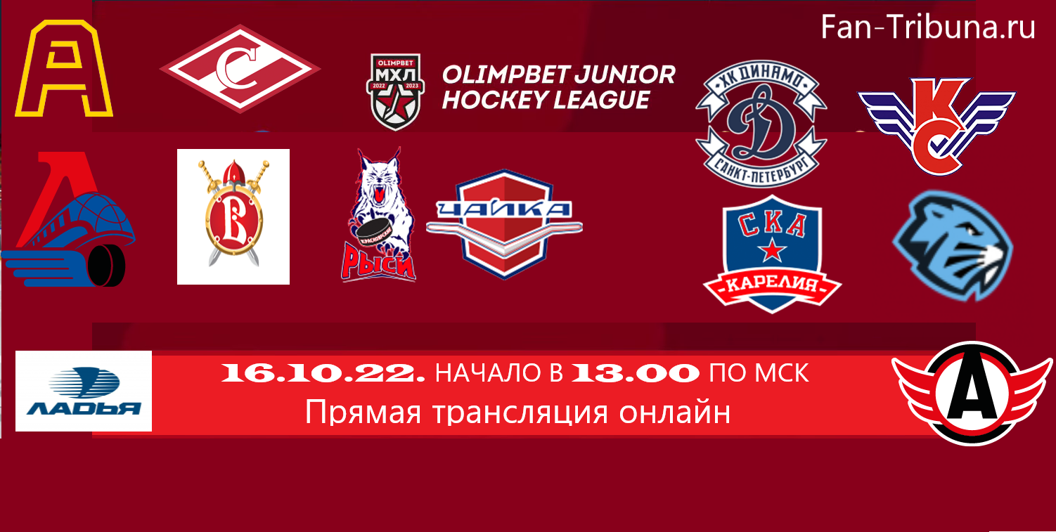 Привет всем любителям хоккея с шайбой ! 16 октября 2022 года пройдут матчи регулярного чемпионата Молодежной Хоккейной Лиги. ХК Алмаз принимает ХК Спартак; ХК Локо-ХК Русские Витязи; ХК Динамо СПб-ХК Крылья Советов; ХК СКА Карелия-ХК Динамо Шинник; ХК Красноярские Рыси-Чайка; ХК Ладья-ХК Авто. Прямую трансляцию игры вы сможете посмотреть на этом сайте Fan-Tribuna.ru. Всем удачи и приятного просмотра. Начало в 13.00 по МСК.