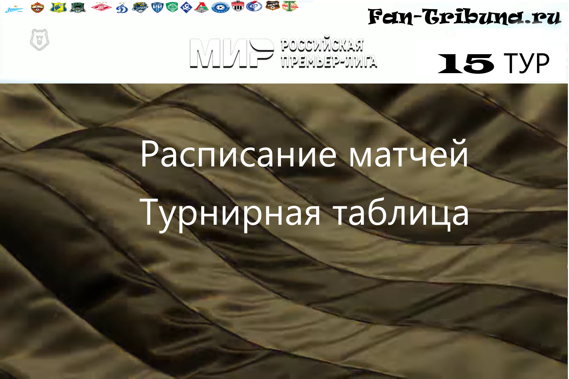 Привет всем фанатам футбола ! С расписанием матчей на 15 тур сезона 22/23 Российской Премьер Лиги вы ознакомитесь на этой странице сайта Fan-Tribuna.ru. А так же узнаете о расположении команд в турнирной таблице перед предстоящими поединками футбольного чемпионата . Прямые трансляции и видеообзоры игр 15 тура вас ждут на нашем сайте. Всем удачи и увлекательных просмотров.