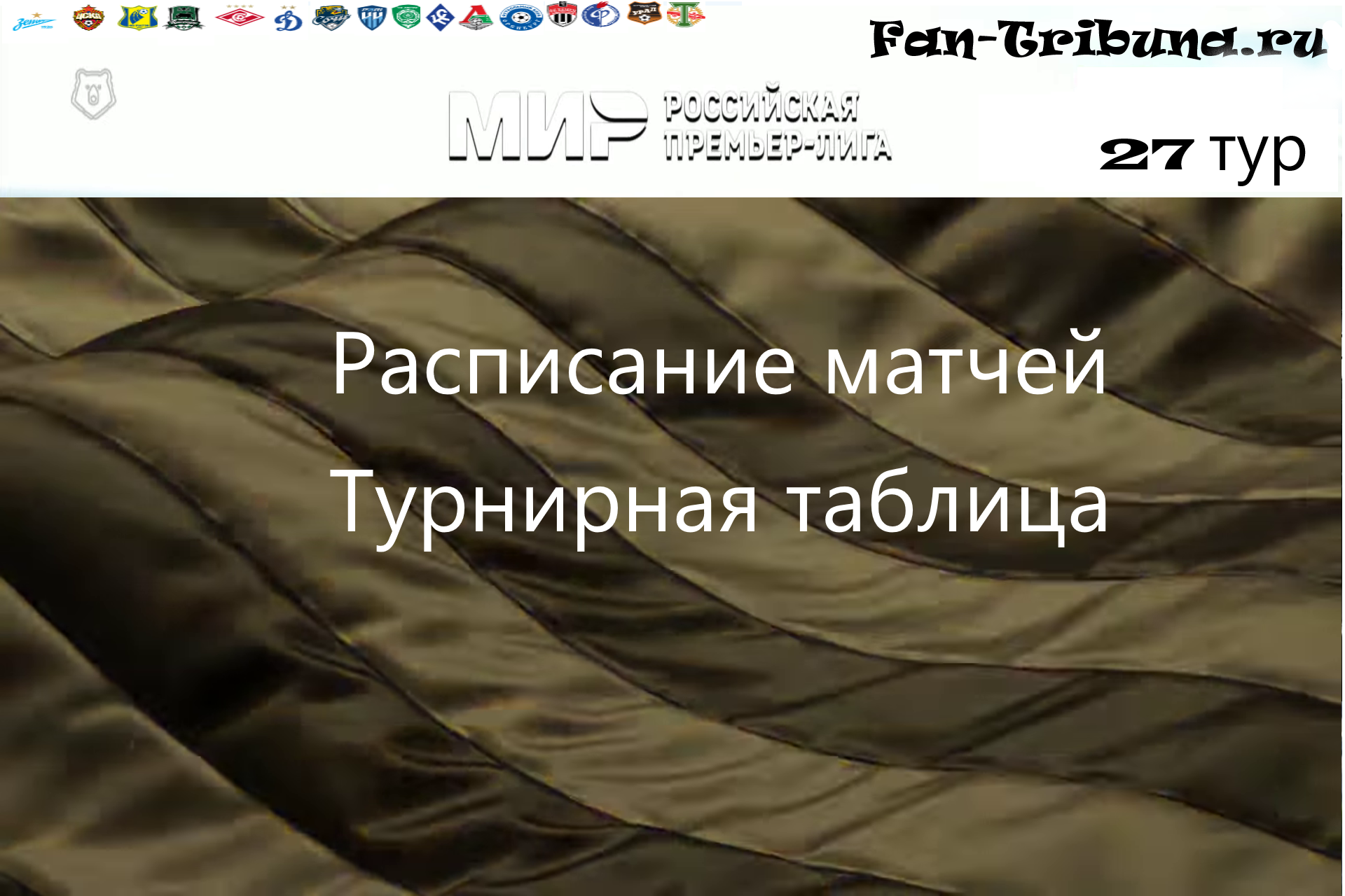 Привет всем любителям спорта и фанатам футбола ! С расписанием матчей на 27 тур сезона 22/23 Российской Премьер Лиги вы ознакомитесь на этой странице сайта Fan-Tribuna.ru. А так же узнаете о расположении команд в турнирной таблице перед предстоящими поединками футбольного чемпионата Российской Премьер Лиги. Результаты матчей 26 тура. Прямые трансляции и видеообзоры игр 27 тура вас ждут на нашем сайте а так же на сайте Butsa.site. Всем удачи и увлекательных просмотров.