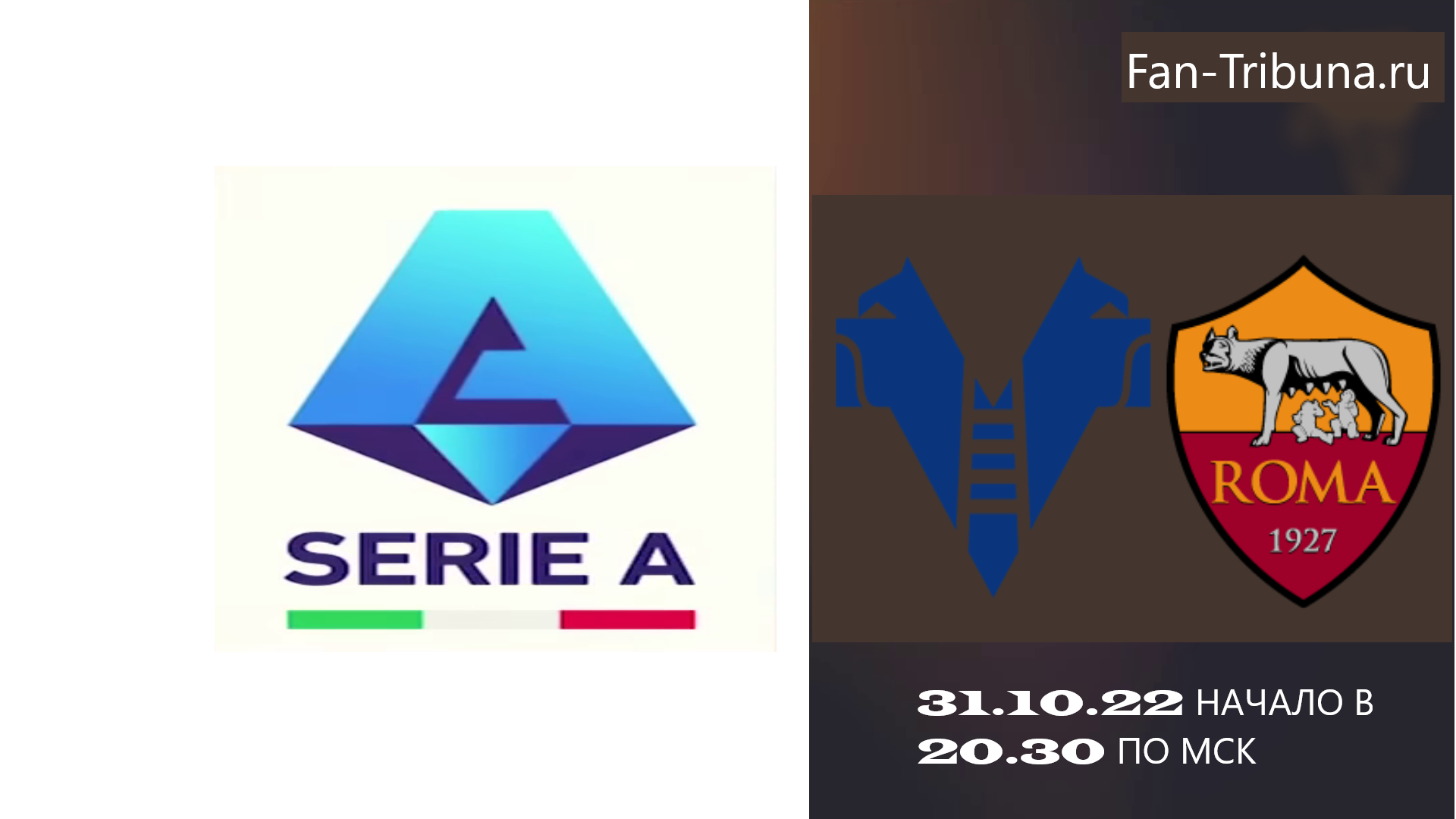 Привет всем фанатам футбола! 31 октября 2022 года состоится матч 12 тура чемпионата Италии по футболу в рамках Серии А. На стадионе: «Марк-Антонио Бентегоди» (Верона, Италия) вместимостью: 39211 зрителей ФК Верона(Верона) встречается с Рома (Рим).Прямую трансляцию матча вы сможете посмотреть на нашем сайте Fan-Tribuna.ru .Начало в 20.30 по МСК. Всем удачи и приятного просмотра.